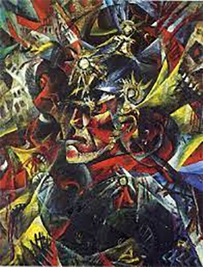 യുദ്ധത്തിന്റെ ഇരുണ്ട നിറങ്ങള് തൊട്ടടുത്തു നിന്ന് കണ്ട ഓട്ടോ ഡിക്സിനെ പല സെല്ഫ് പോര്ട്രൈറ്റുകളിലും നമുക്ക് കാണാനാകും, എന്നാല് ചോരയോലിക്കുന്ന മുഖങ്ങളും തകര്ന്നു വീണ കെട്ടിടങ്ങളും പകുതി ജീവനുള്ള കുതിരകളും ബോംബുകളും നിറഞ്ഞ പശ്ചാത്തലത്തില് കേന്ദ്രഭാഗത്തുള്ള വിഹ്വലമായ ഡിക്സിനെ കാണുക ഭീതിതമാണ്. (Self portrait as mars)
