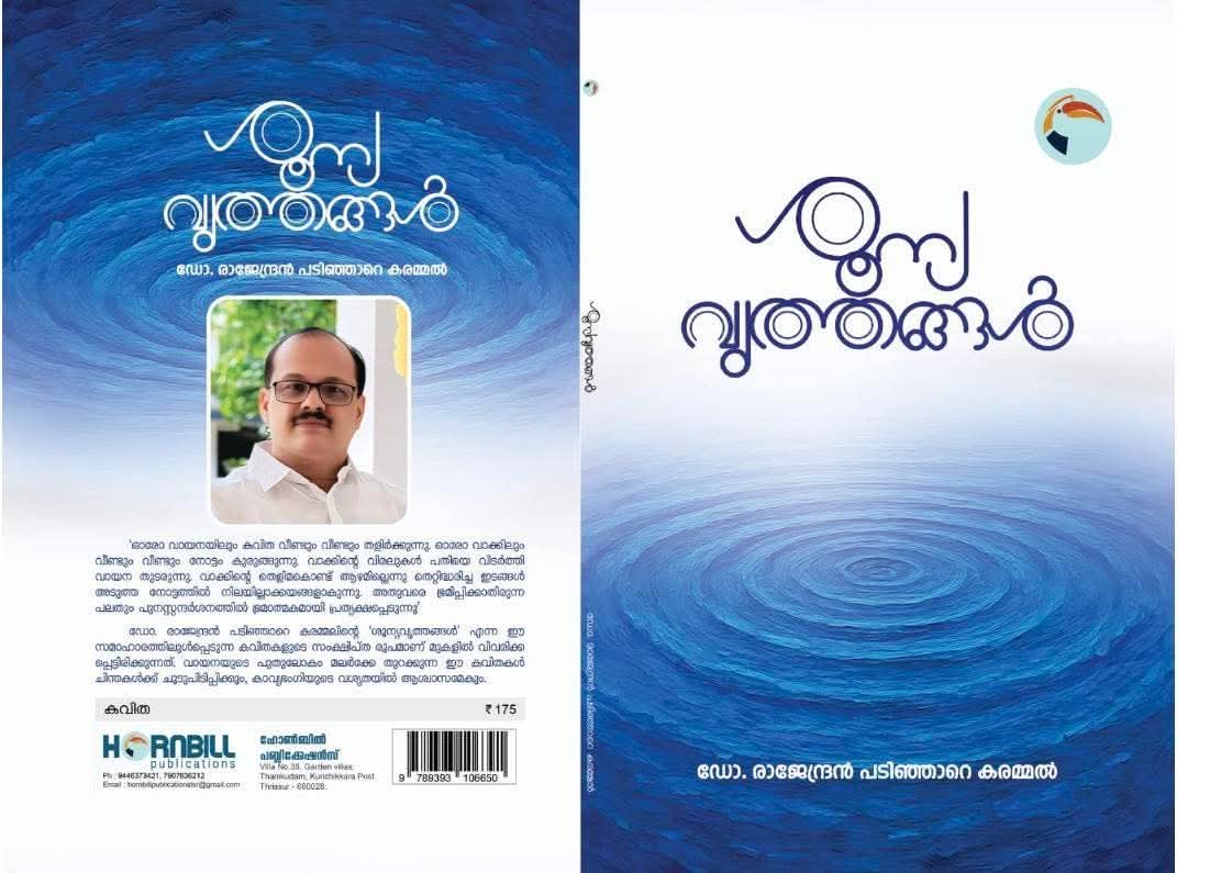 “ശാന്തമായി ഒഴുകുന്ന പുഴ” – രാജേന്ദ്രൻ പടിഞ്ഞാറെ കരമ്മലിൻ്റെ ശൂന്യവൃത്തങ്ങൾ എന്ന കവിതാസമാഹാരത്തിലെ കവിതകളെ ഒറ്റ വാചകത്തിൽ ഇങ്ങനെ നിർവ്വചിക്കാം. പക്ഷേ ആ പുഴ ജീവിക്കുന്നത് ഒരിക്കൽ കരകവിഞ്ഞൊഴുകിയതിൻ്റെ ഓർമ്മയിലാണ്. പുഴകൾ ചിലപ്പോൾ പുറകോട്ടും ഒഴുകാറുണ്ട്. വാക്കു ചുരുക്കുമ്പോൾ നിവർന്നു വരുന്ന കവിതകളാണവ. വാക്കുകളെ കൊണ്ട് നൃത്തം ചെയ്യിക്കലാണല്ലോ കവിതയെഴുത്ത്.