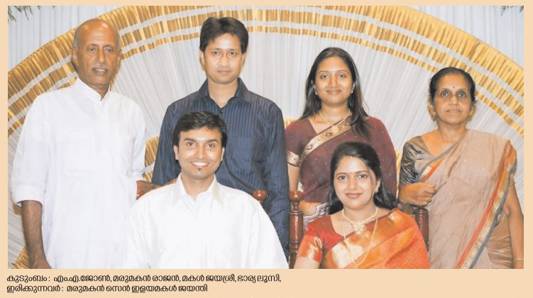 പരിവര്ത്തനവാദി പ്രസ്ഥാനം തകര്ന്നതിന്റെ അനന്തരഫലങ്ങളില് ഒന്നാണ് ഞങ്ങള് (ഞാനും എന്റെ അനുജത്തിയും) എന്ന് തന്നെ വേണം പറയാന്. ഒരു കാര്യത്തിനായി പ്രവര്ത്തിക്കുമ്പോള് കുടുംബം എന്ന ഉത്തരവാദിത്വം, ഏറ്റെടുത്ത കാര്യത്തില് പരിപൂര്ണ്ണ ശ്രദ്ധ ചെലുത്തുന്നതിന് അല്ലെങ്കില് അതില് പൂര്ണ്ണമായി മുഴുകി പ്രവര്ത്തിക്കുന്നതിന് തടസ്സമാകും എന്നായിരുന്നു എം.എ. ജോണ് എന്ന എന്റെ അച്ചച്ചാ വിശ്വസിച്ചിരുന്നത്. അതുകൊണ്ടുതന്നെ വിവാഹം കഴിക്കുന്നില്ല എന്ന തീരുമാനത്തിലായിരുന്നു അത് വരെ മുന്നോട്ട് പോയിരുന്നത്.
