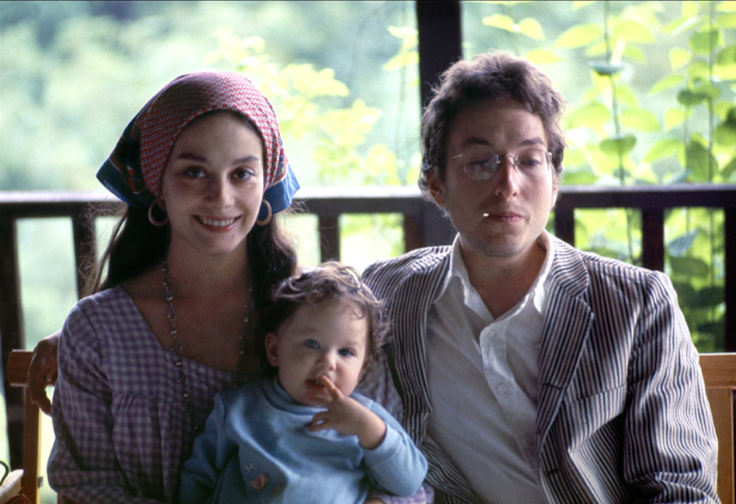 Bob Dylan and Sara Dylan on the porch of Byrdcliffe home, Woodstock, NY, 1968