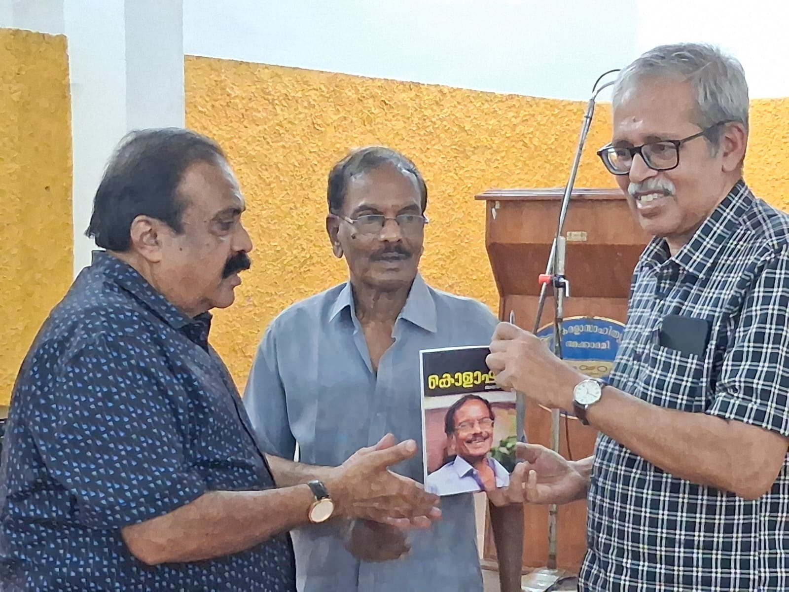 ആ ആദരം പ്രകടമാക്കാന് കൂട്ടുകാരെല്ലാവരും കൂടി തിരഞ്ഞെടുത്ത പുസ്തകപ്രകാശന മാര്ഗ്ഗവും വ്യത്യസ്തമായിരുന്നു. അതിനായി, കൊളാഷിന്റെ പ്രസാധകരായ ലോഗോസ് ബുക്സ് ഒരു പ്രത്യേകാല് കോപ്പി തയ്യാറാക്കി. അതില് അരവിയേട്ടനാശംസയര്പ്പിച്ചുകൊണ്ട് അന്നവിടെ വന്നവര്ക്കെല്ലാം എഴുതാനായി ചില താളുകള് ഒഴിച്ചിട്ടിരുന്നു. അങ്ങനെ അവരുടെ ആശംസകളോടെ ആ കോപ്പി എല്ലാ സുഹൃത്തുക്കള്ക്കും വേണ്ടി കെ.എല്. ശ്രീകൃഷ്ണദാസ്, അയ്മനം ജോണ് എന്നിവര് ചേര്ന്ന് അരവിയേട്ടനു സമ്മാനിച്ചു. അതായിരുന്നു പുസ്തകപ്രകാശനം. ഞങ്ങള്ക്ക് തന്ന സ്നേഹസൗഹൃദങ്ങളുടെ ഒരു മൊമെന്റൊ എന്ന നിലയിലായിരുന്നു സുഹൃത്തുക്കളുടെ ഈ സമ്മാനം. ഈ സ്നേഹത്തിനും സൗഹൃദത്തിനും സാക്ഷ്യം വഹിക്കാനെത്തിയ സമാനമനസ്കരുടെ സാന്നിദ്ധ്യത്തിലായിരുന്നു ഇങ്ങനെയൊരു പ്രകാശനം. വേറിട്ട പ്രകാശനം. അതില് എഴുതിയവര്ക്കെല്ലാം തന്റെ കയ്യൊപ്പോടുകൂടിയ കോപ്പി സമ്മാനമായി നല്കിയായിരുന്നു അരവിയേട്ടന്റെ പ്രതികരണം.