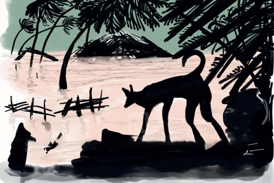 ”ചേന്നന് നീന്തിത്തുടിച്ചു പട്ടിയെ അന്വേഷിച്ചു കൊട്ടിലിലേക്കു വരികയാണ് ”